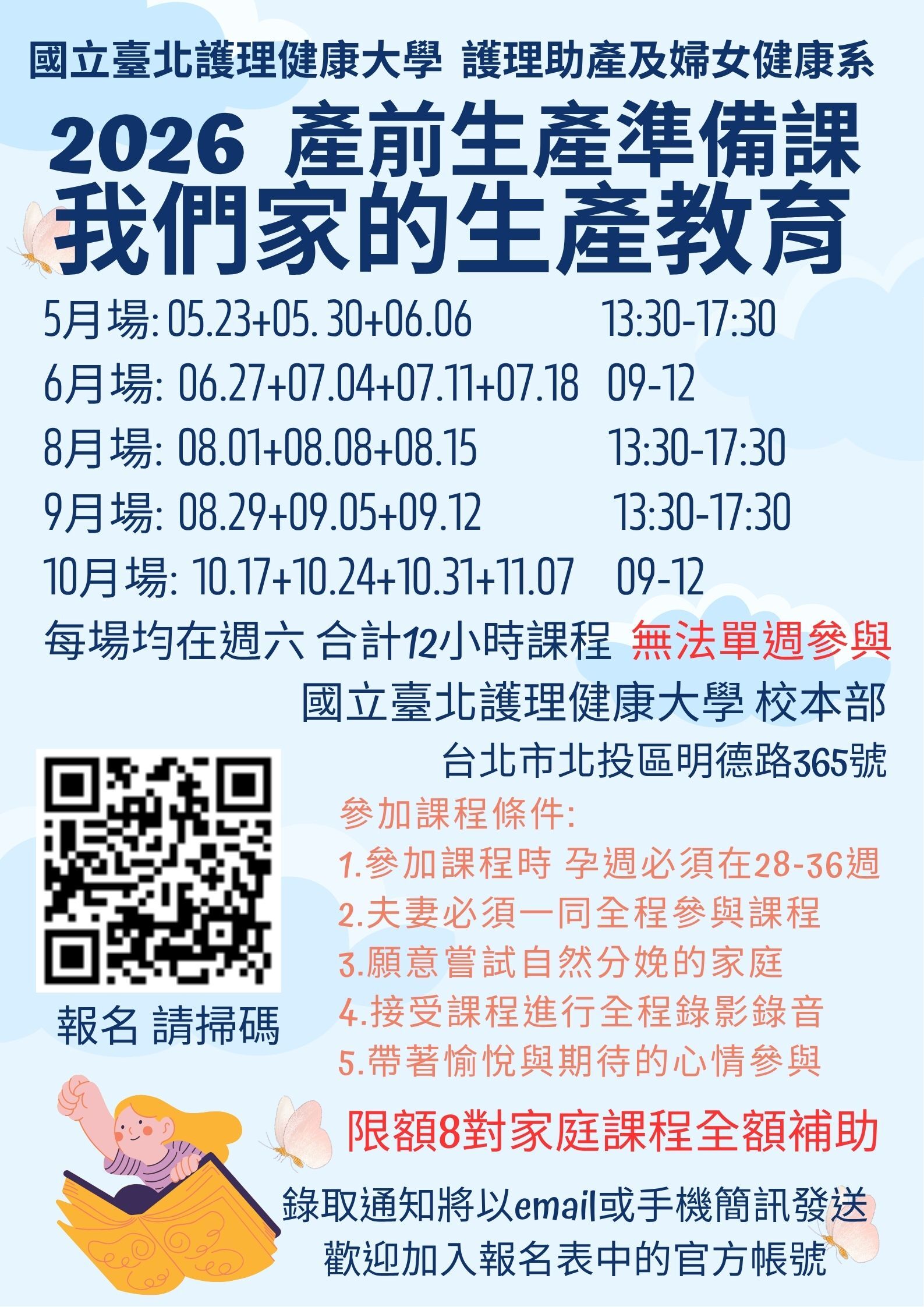 北護大助產系 2026年5、6、8、9、10月生產教育課招募宣傳